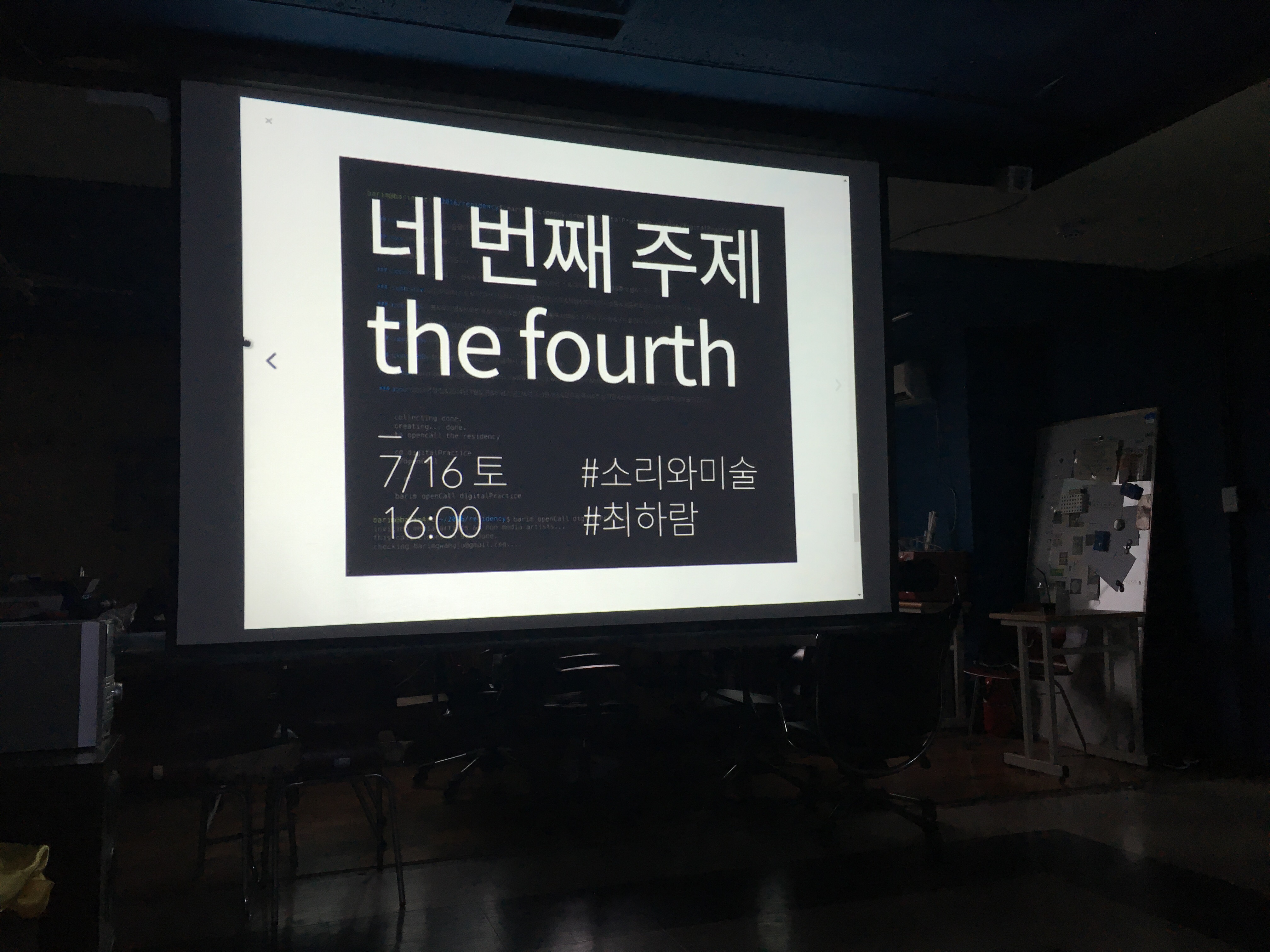 I went to Barim, the my favorite alternative space in Gwangju, to participate in one of Artist-talk programs last week. (I am a kind of one of supporters corp.) the topics were about sound art and its various perspectives. the two speakers had different ideas on Sounds art and fine art. It was really interesting to know two different perspectives because two artists (Youjin Jeon, Haram Choi) had worked in a different background. Jeon studied computer programming and has worked in a field of sound art, Haram Choi has worked in a field of music which audiences usually used to listen. Following their presentation, then we talked about differences of Sound/Music / Engaging audiences / the necessity of re-enacting sounds..etc.