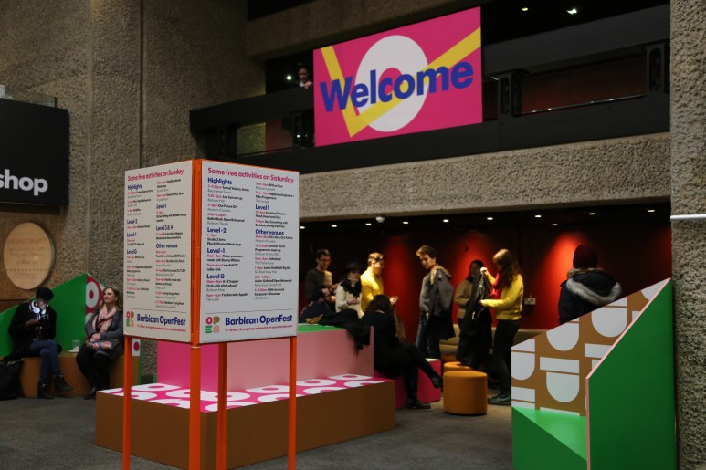 다양한 콘텐츠를 다루는 복합문화기관 답게 크고 작은 수많은 축제가 열리는 데, 취재 날에는 바비칸 오픈페스트(Barbican OpenFest)가 열리고 있었다. 바비칸 오픈페스트는 바비칸의 문화공간 즉 바비칸센터, 길드홀 음악 연극학교, 런던 심포니 오케스트라, 런던 뮤지엄등이 공동으로 개최하는 주말 페스티벌이다. 런던 금융가 중심에 있는 바비칸 센터에서 사람들에게 창의적인 협력의 기회와 흥미진진한 상상력을 펼칠 수 있는 장을 제공하는 것이 목적이다. 그 일례로 오픈페스트 행사 기간 ‘터널 비전’이라는 디지털 프로젝션 설치를 통해 런던 금융가의 바쁜 거리와 터널을 스펙타클한 빛으로 칠했다. 공공장소의 예술적 변환을 통해 일상에 창의성을 불어넣었다. 바비칸센터만의 연례 프로젝트 주제인 “변화의 예술(THE ART OF CHANGE)”에 맞추어, 오픈 페스트기간에는 반 전쟁, 성평등, 환경, 반자본주의, 사회정의 등 다양한 사회 문제를 공예와 함께 다루는 크래프티비즘(Craftivism)과 같은 동시대의 흥미로운 주제의 토크 프로그램도 열린다. 바비칸 센터의 연례 프로젝트는 일종의 캠페인인데, 올해는 “변화의 예술”이라는 이름으로 국내외적으로 모든 것이 불확실한 이 시대, 예술이 어떻게 사회정치적 풍경의 변화에 대응할 수 있는지 고민한다. 페미니즘, 기후변화, 인권 이라는 주제를 바비칸 센터의 무대, 갤러리, 스크린과 공공장소를 플랫폼 삼아 예술적인 관점을 제시한다. 영화감독의 유투브용 영상 제작, 바비칸 센터의 ‘젊은 시인’ 그룹이 이 주제를 가지고 작품을 제작할 수 있도록 지원한다. 온라인에서도 이 캠페인으로 계속해서 콘텐츠를 업데이트 하고 있다. 바비칸센터는 동시대를 반영한 특정 주제를 통해 온오프라인에서 캠페인을 진행하고 열린 공간으로서의 무한한 가능성을 확장하고 있다.